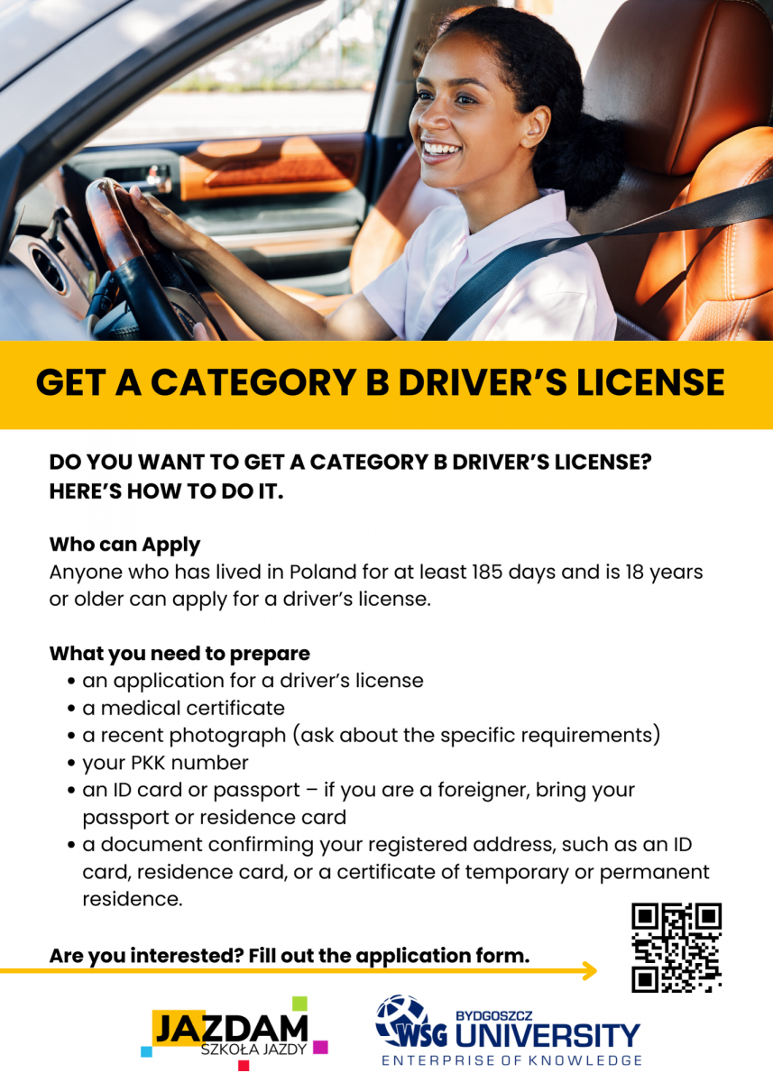 SIGN UP FOR A CATEGORY DRIVING LICENSE COURSE B FOR FOREIGNERS, THE COURSE IS PROVIDED BY JAZDAM DRIVING SCHOOLS